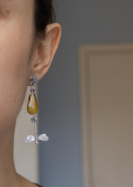 Aretes Libélula con Ámbar