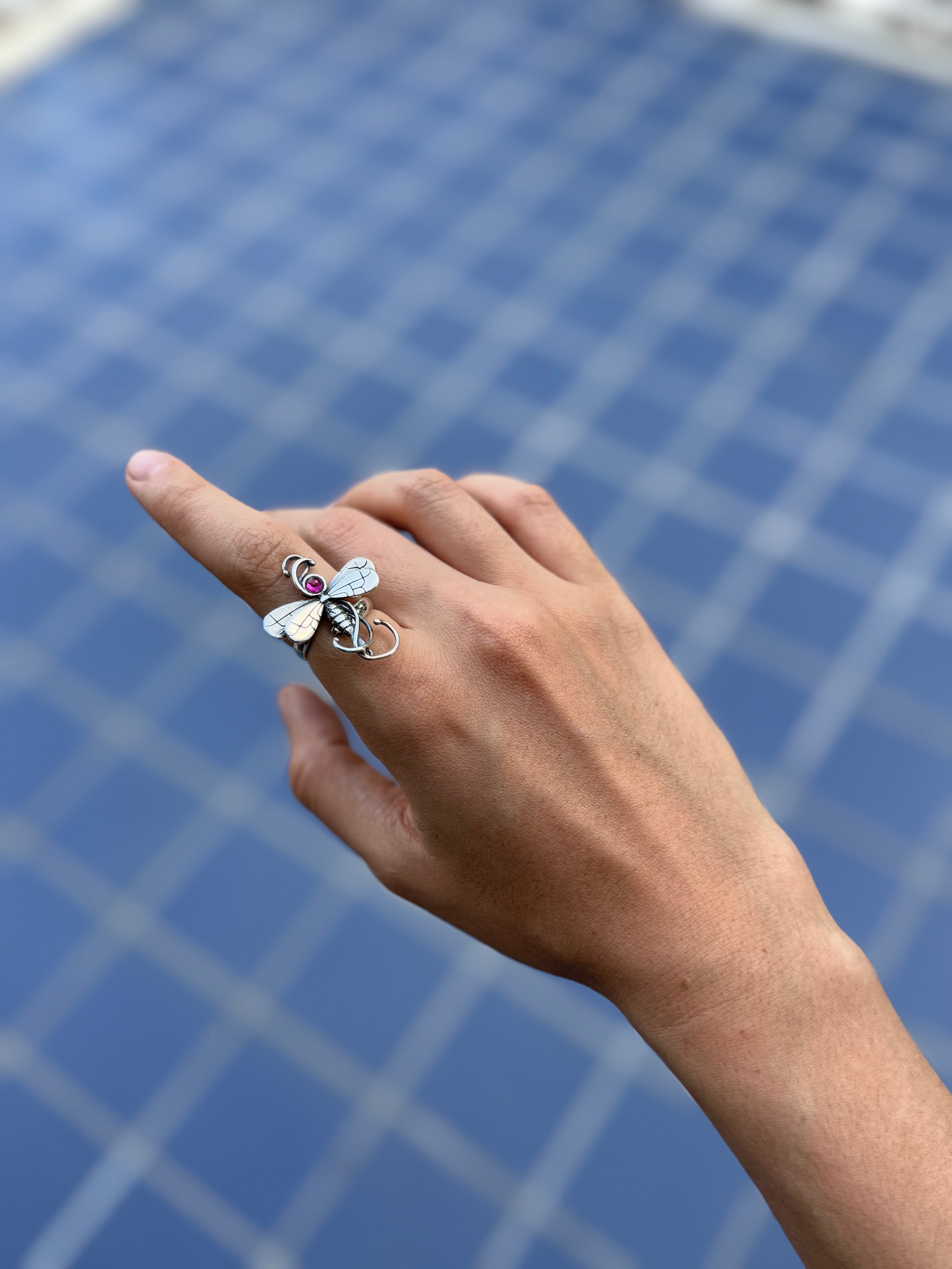 Esta joya posa una sola libélula en tu centro, blanca como el instante en que todo se aclara.
