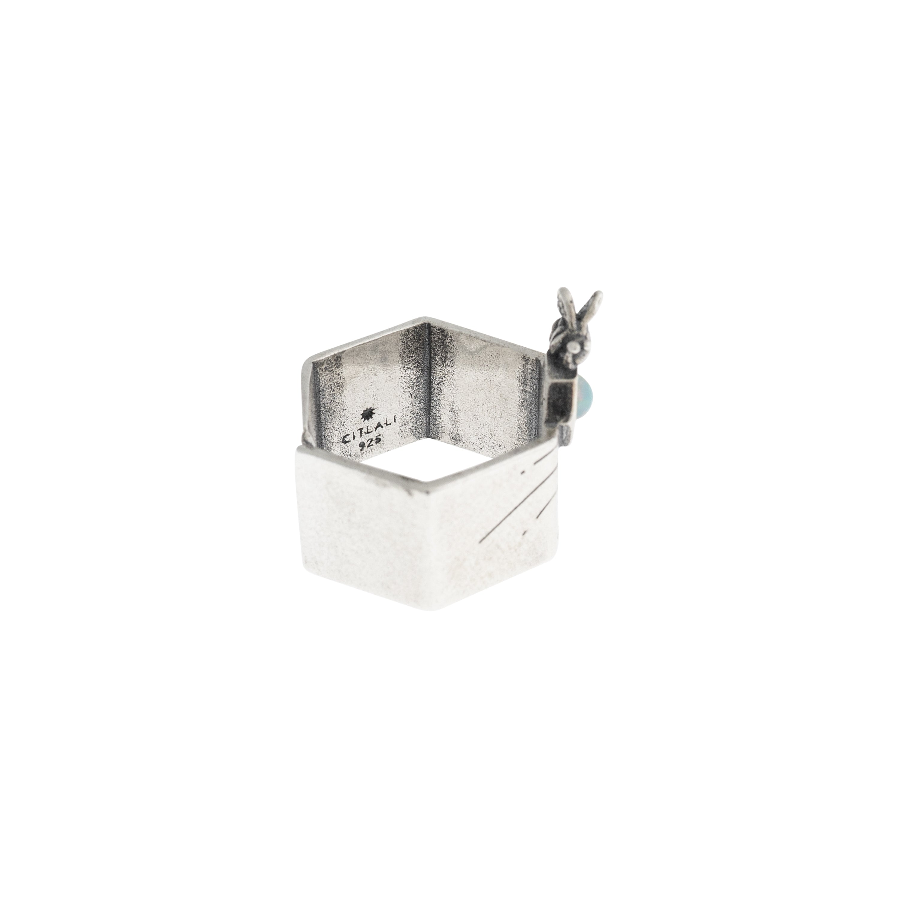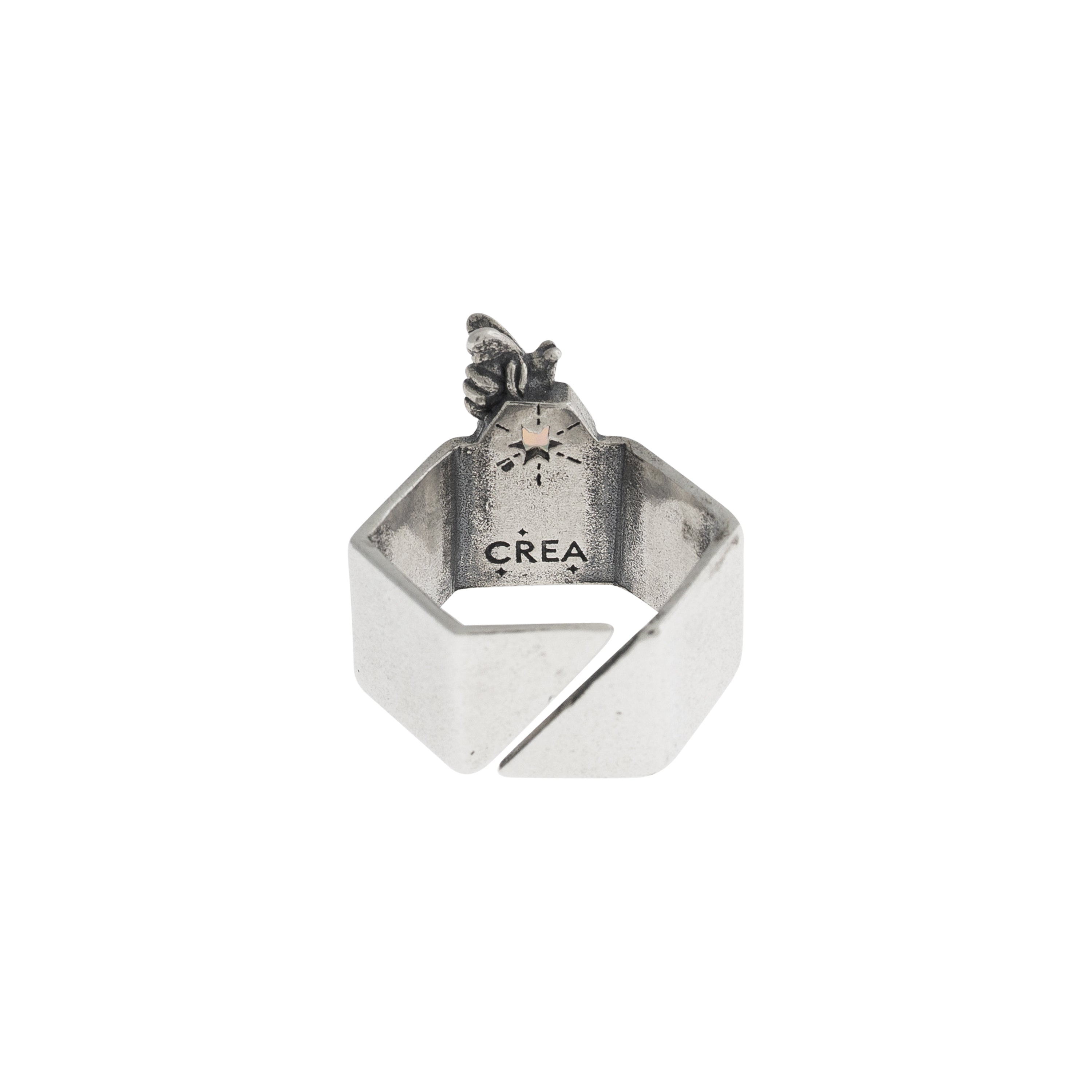 Anillo hexagonal de plata 0.925 y un ópalo.