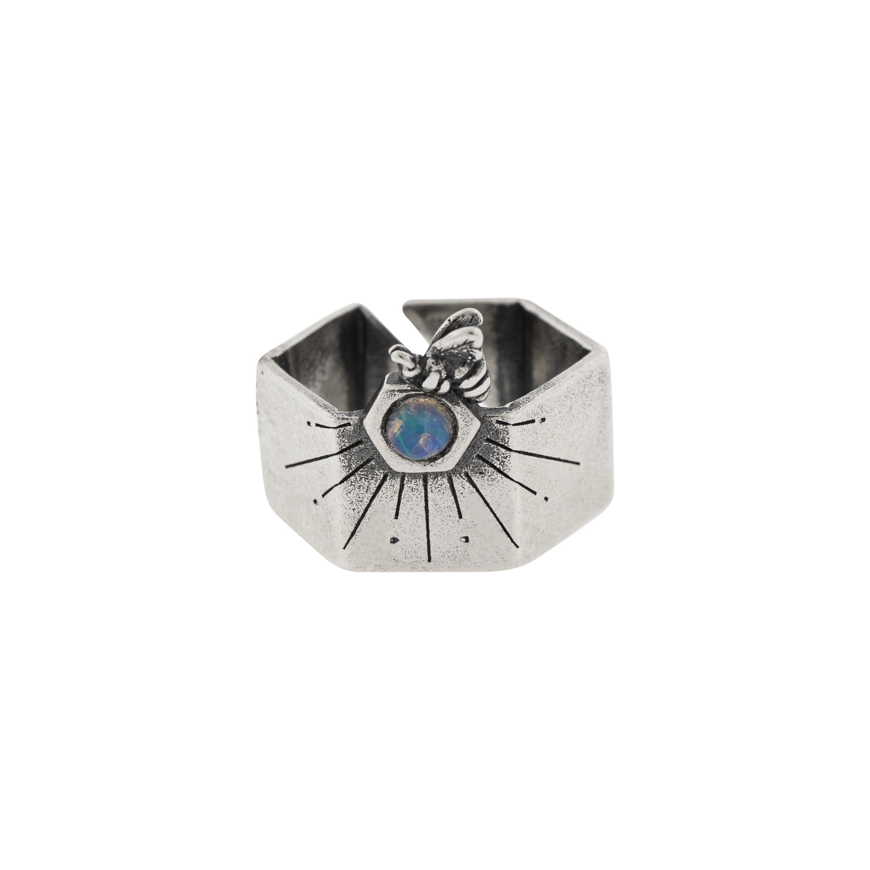 Anillo hexagonal de plata 0.925 y un ópalo.