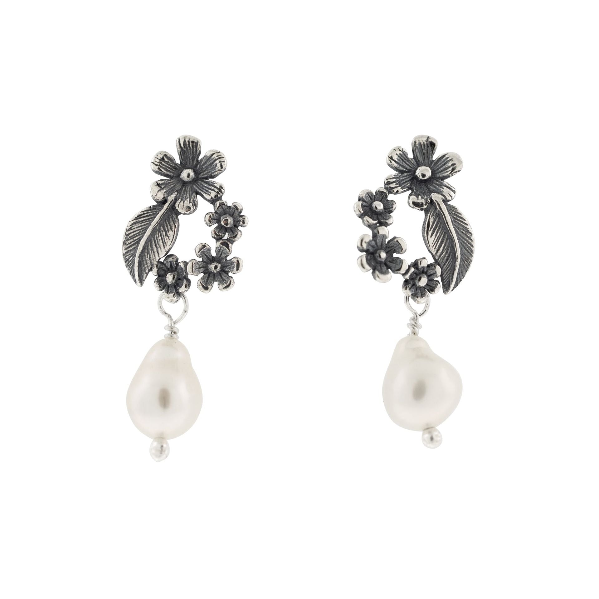 Aretes de plata .925 con diseño de ramito de flores y piedra natural engarzada.