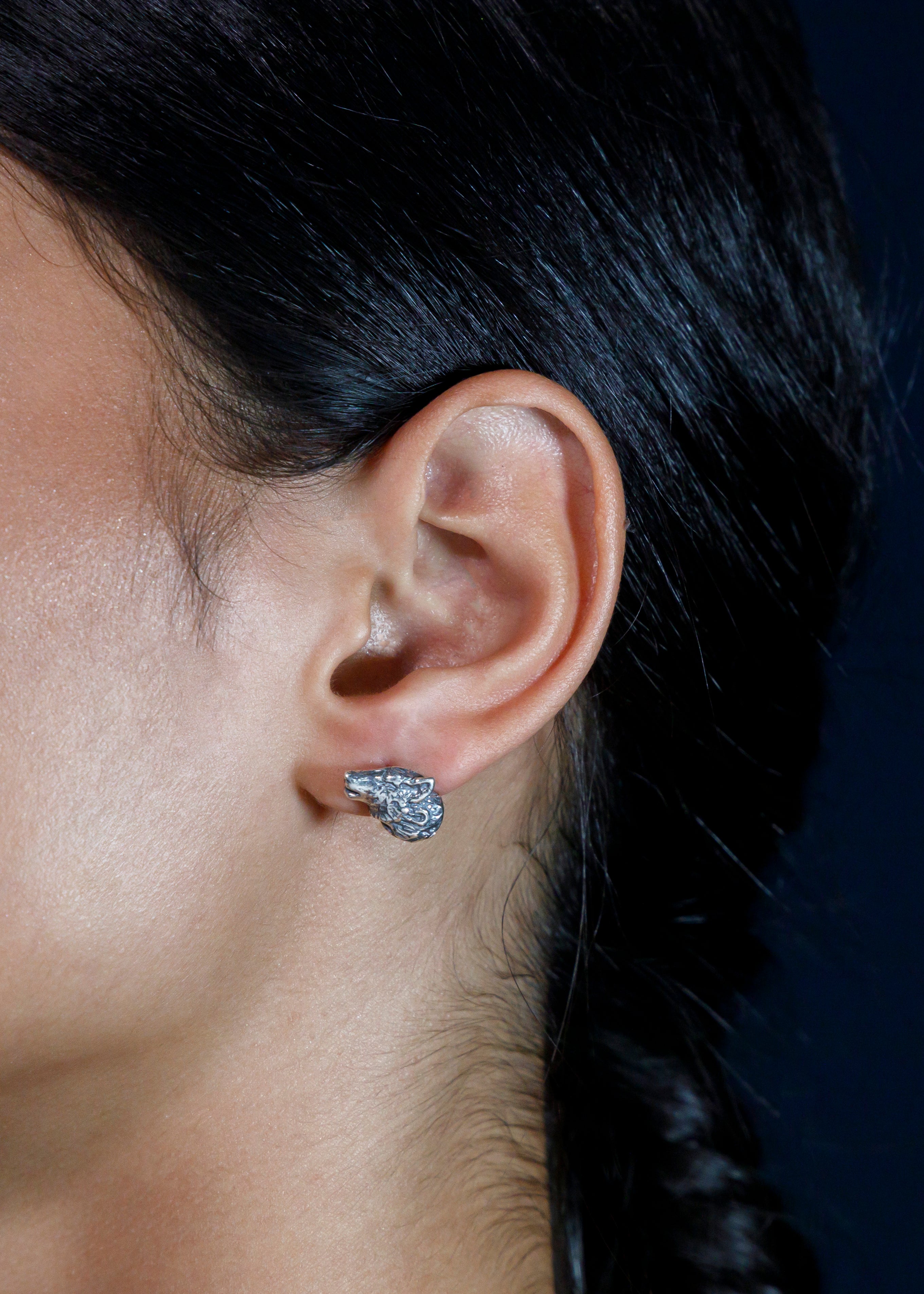 Delicados broqueles hechos de plata patinada para hacer destacar los detalles.