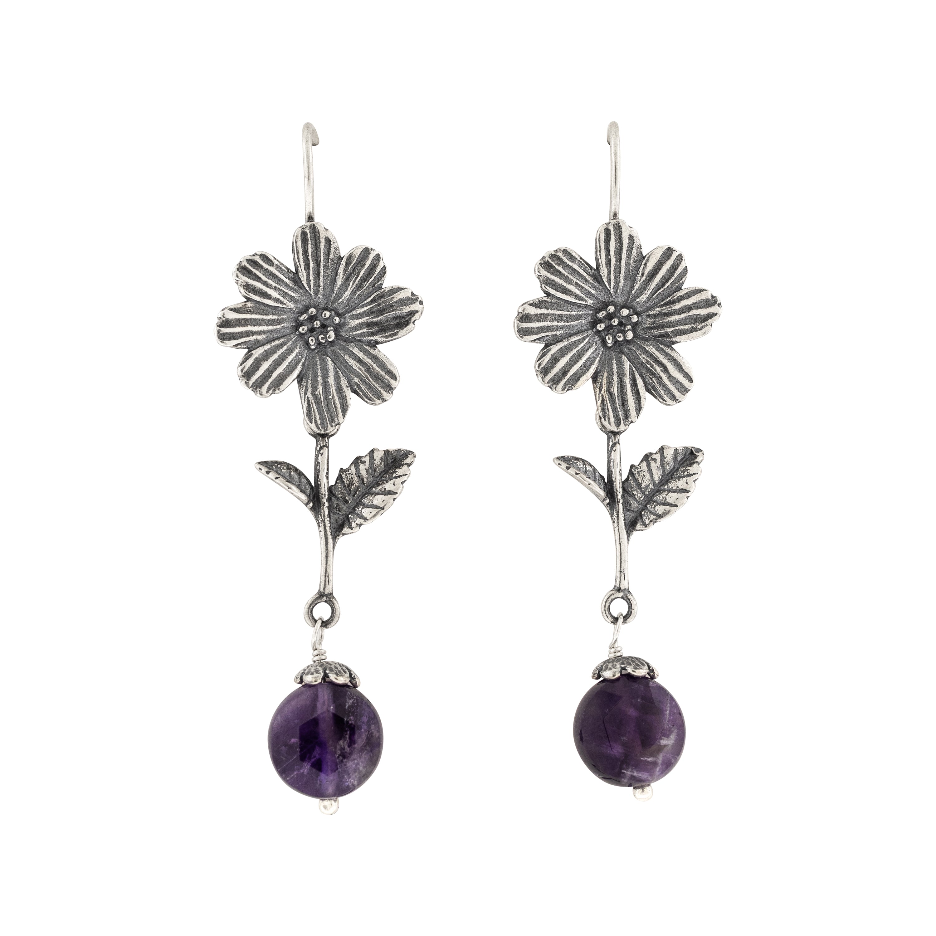 Las flores siempre nos han alegrado el corazón. Deja que su alegría brille en tus orejas con estos delicados aretes de plata con piedra amatista facetada colgantes.