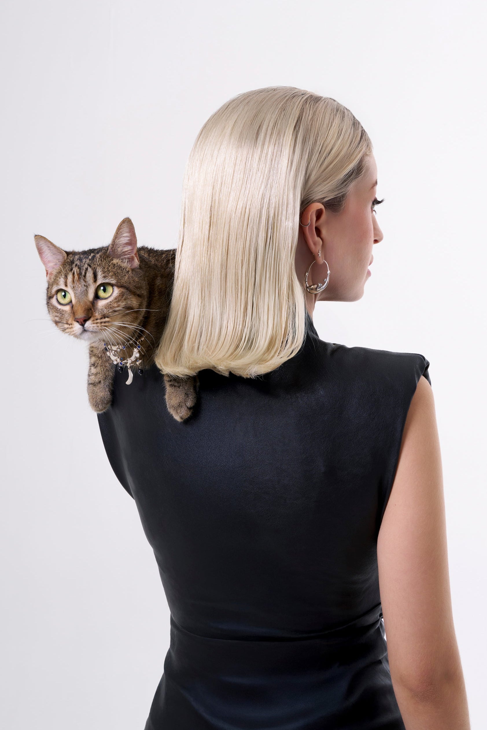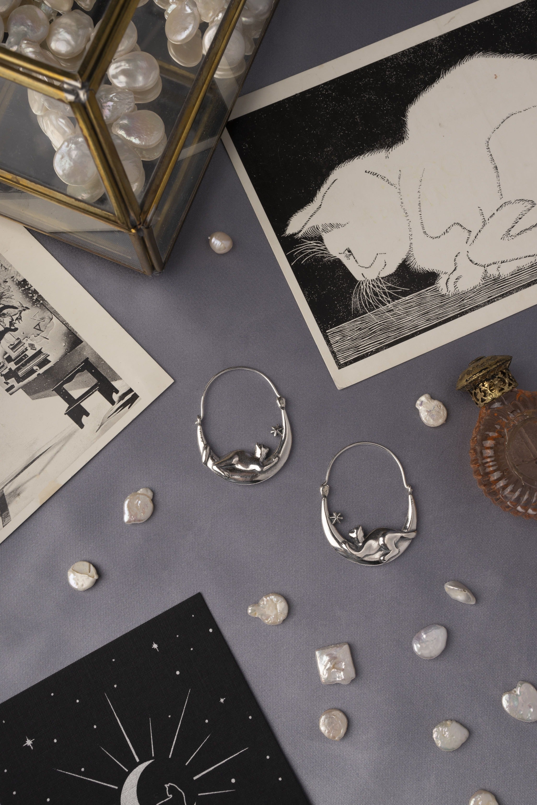 En una noche silenciosa, el gato encontró una estrella descansando en la curva de la luna. No la quiso atrapar, solo jugar con su luz como quien sabe que la belleza no es para poseerse, sino para danzar con ella.