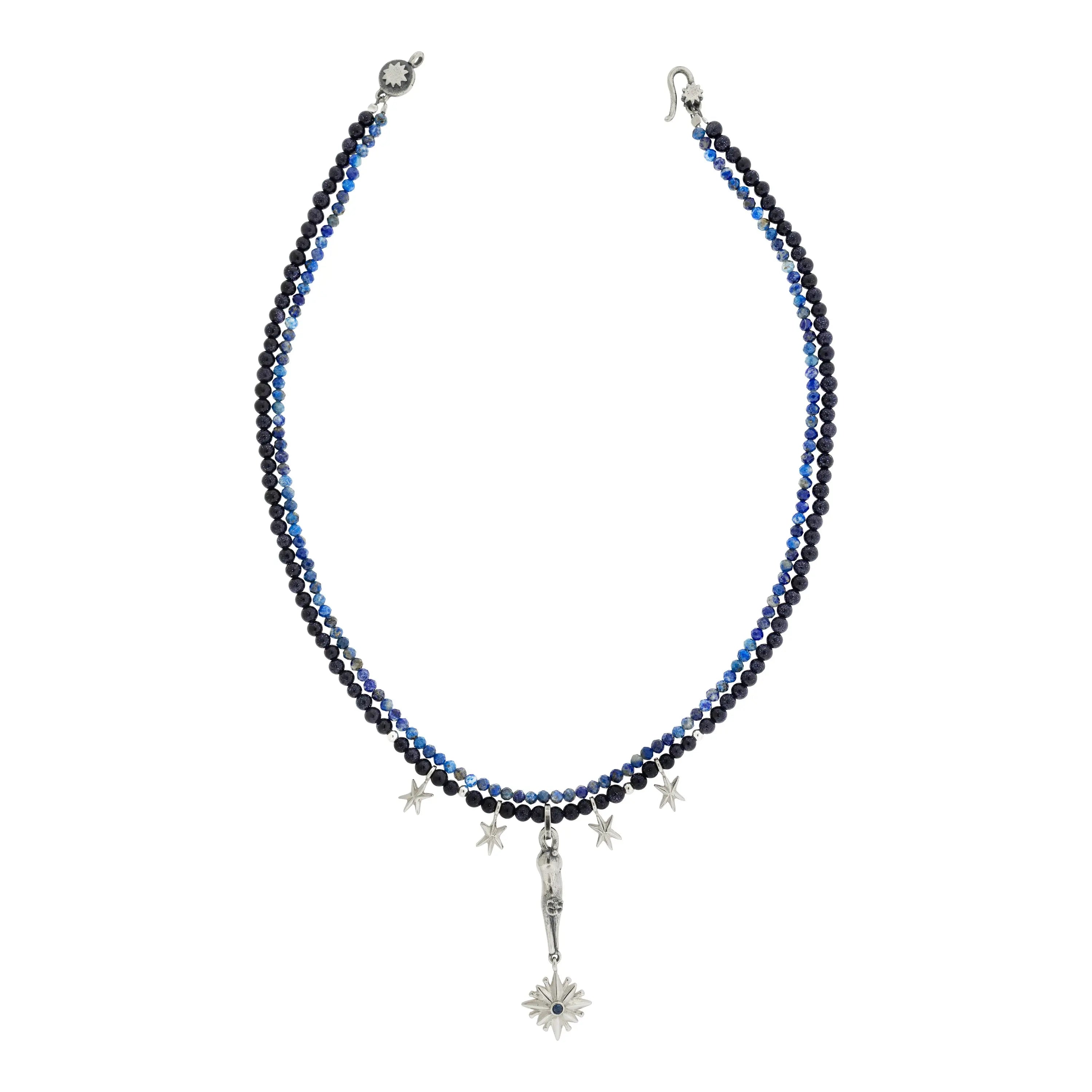 Collar plata 925 brillante dibujan el firmamento en movimiento con lapislázuli y bellas venturinas.