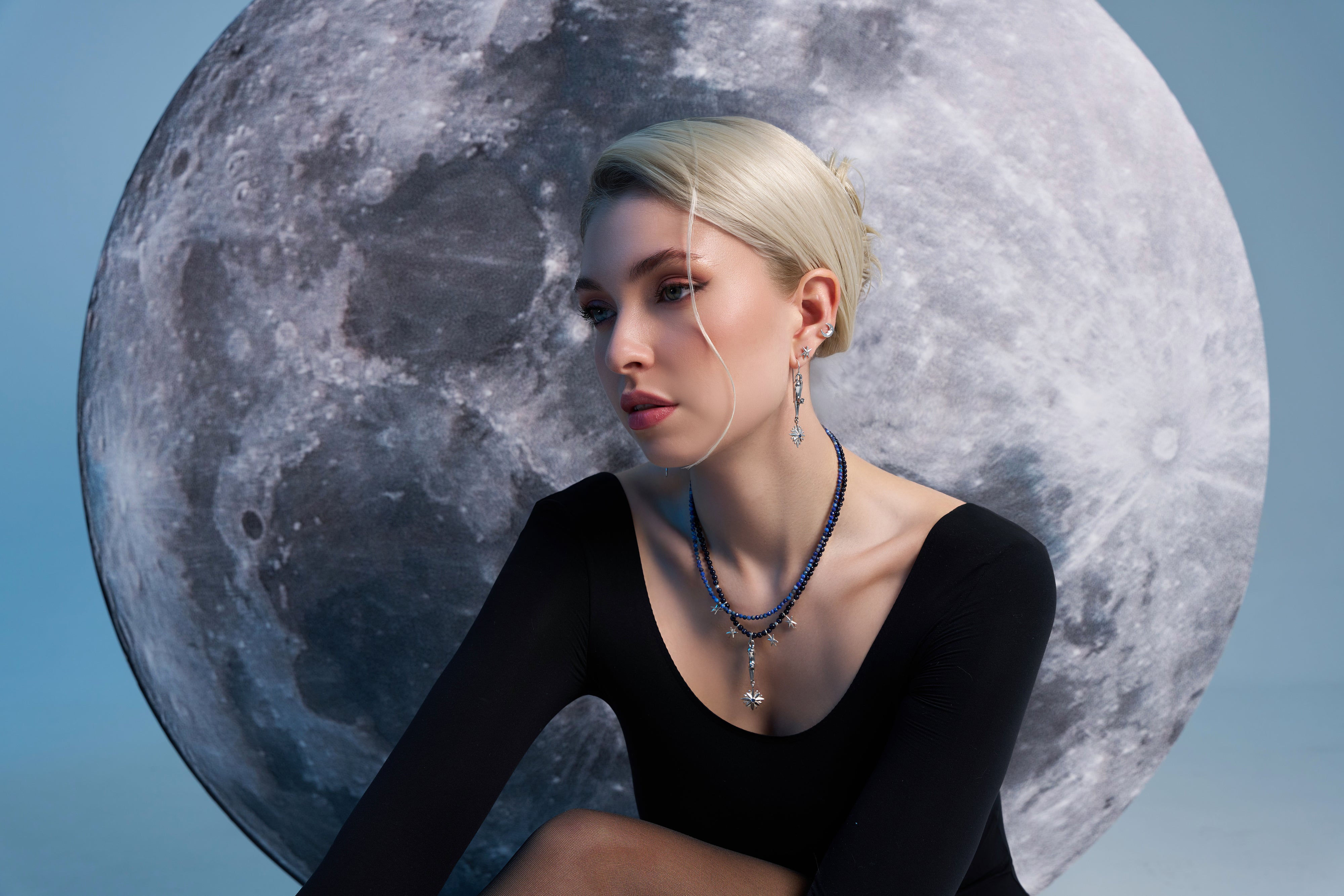 Este collar teje una constelación donde las estrellas pequeñas rodean a una gran protagonista, y en el centro, un felino suspendido en ese instante de anhelo, cuando el deseo toca el borde del universo. Collar Alcance de Luz” es un tributo a quienes se atreven a tocar lo inalcanzable, porque saben que en el intento… ya hay belleza.