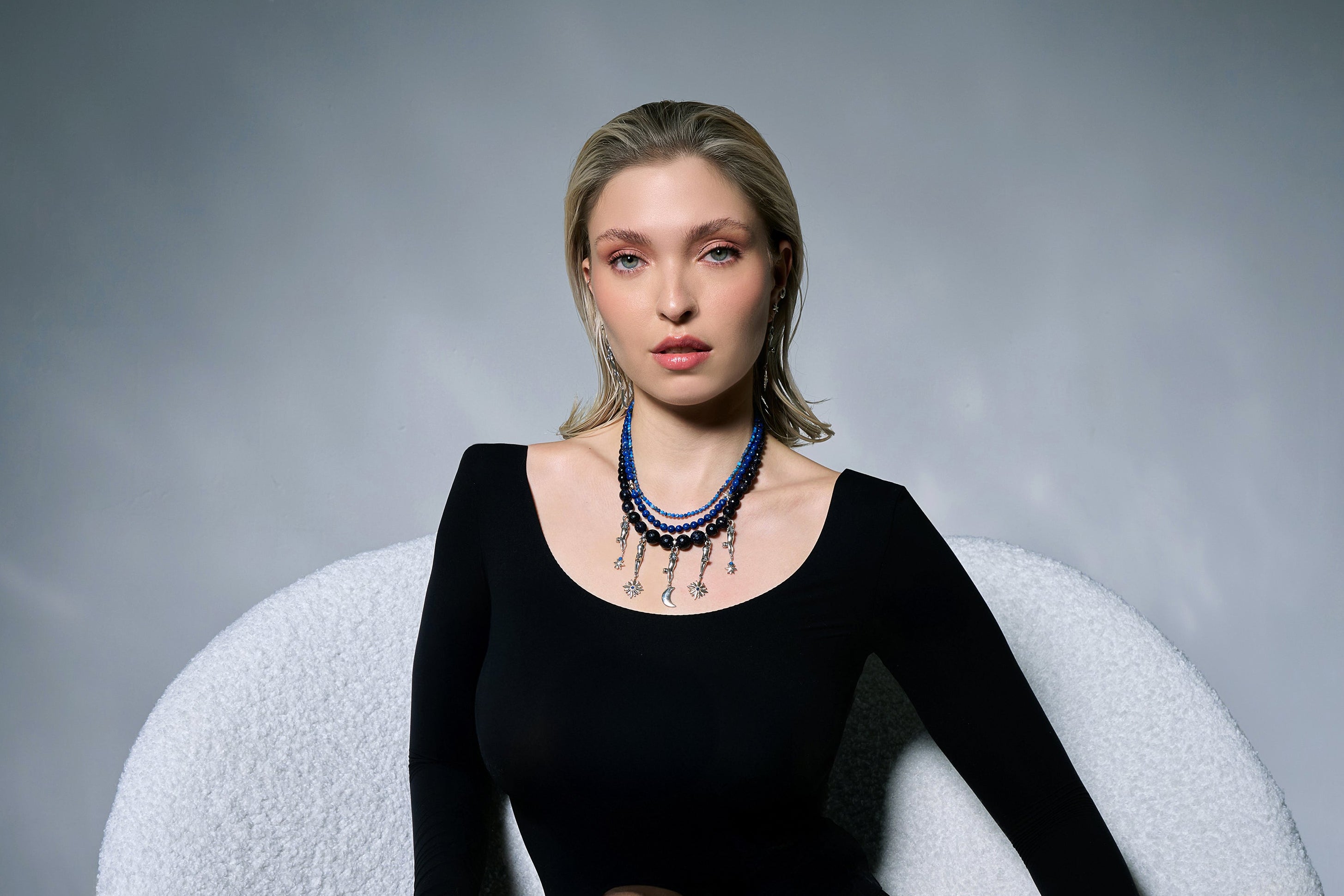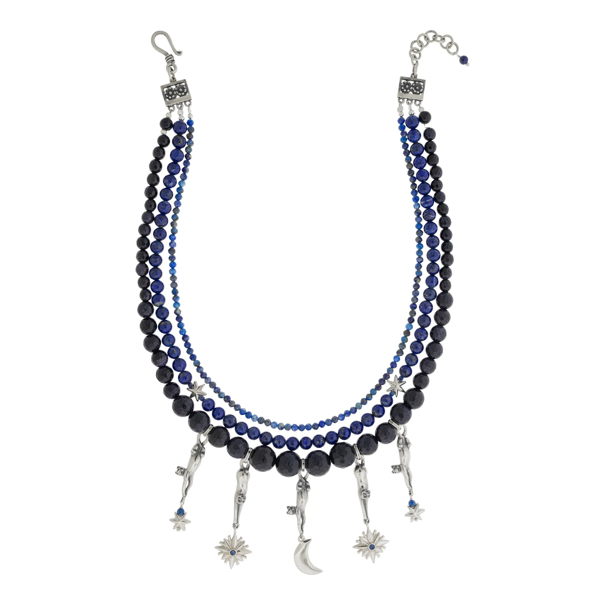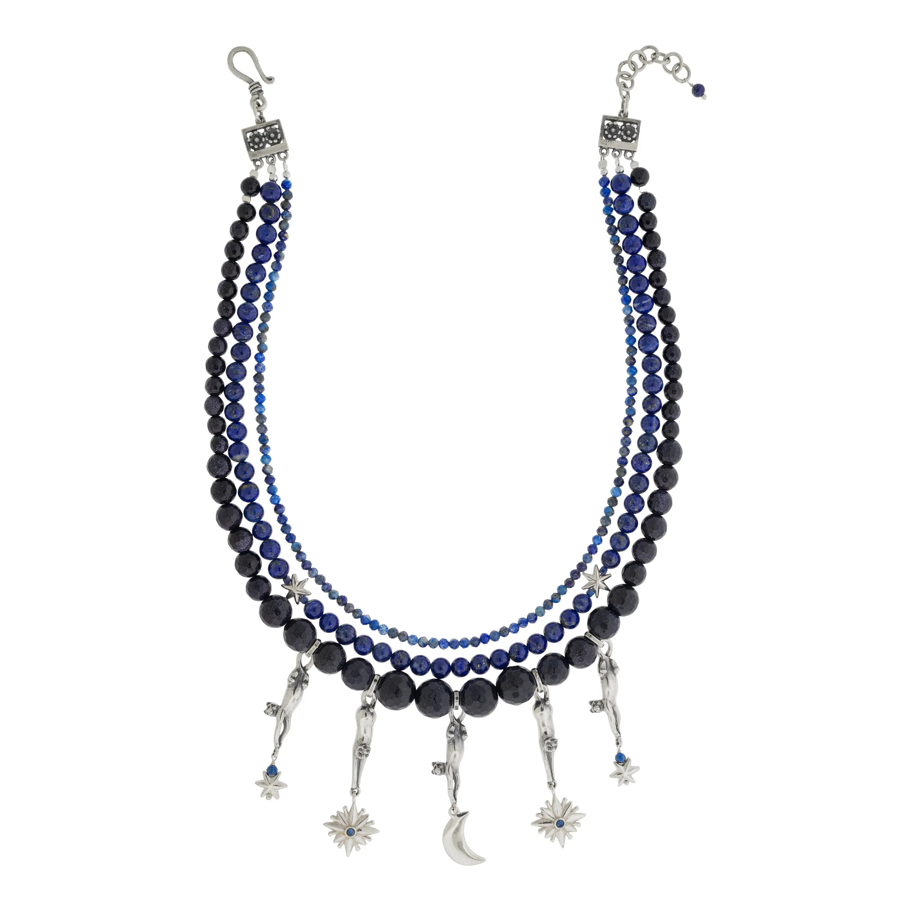 Cinco gatos miran al cielo. Uno sueña con tocar la luna, otro estira su pata hacia una estrella fugaz., un tercero baila con la luz, el cuarto ronronea al universo, y el último… simplemente cree que puede volar. Este collar es para quien sabe que alcanzar lo imposible también es una forma de vivir.