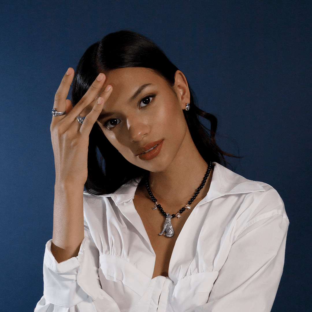 Plata pavonada .925 con piedras naturales ónix y perla.