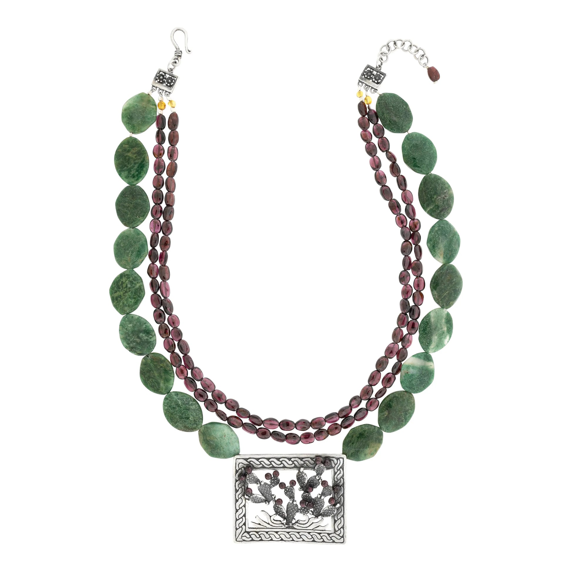 Dicen que el nopal llegó ahí por azar, llevado por un pájaro que no sabía que sembraba historia. Pero algunas semillas llevan mapas invisibles… y esta encontró su lugar exacto en el tiempo. Sin ella, no habría mito, ni lago, ni águila, ni serpiente. Porque a veces el origen más humilde sostiene los relatos más grandes. Este collar honra la fuerza callada de los comienzos que no se jactan, pero transforman el mundo.