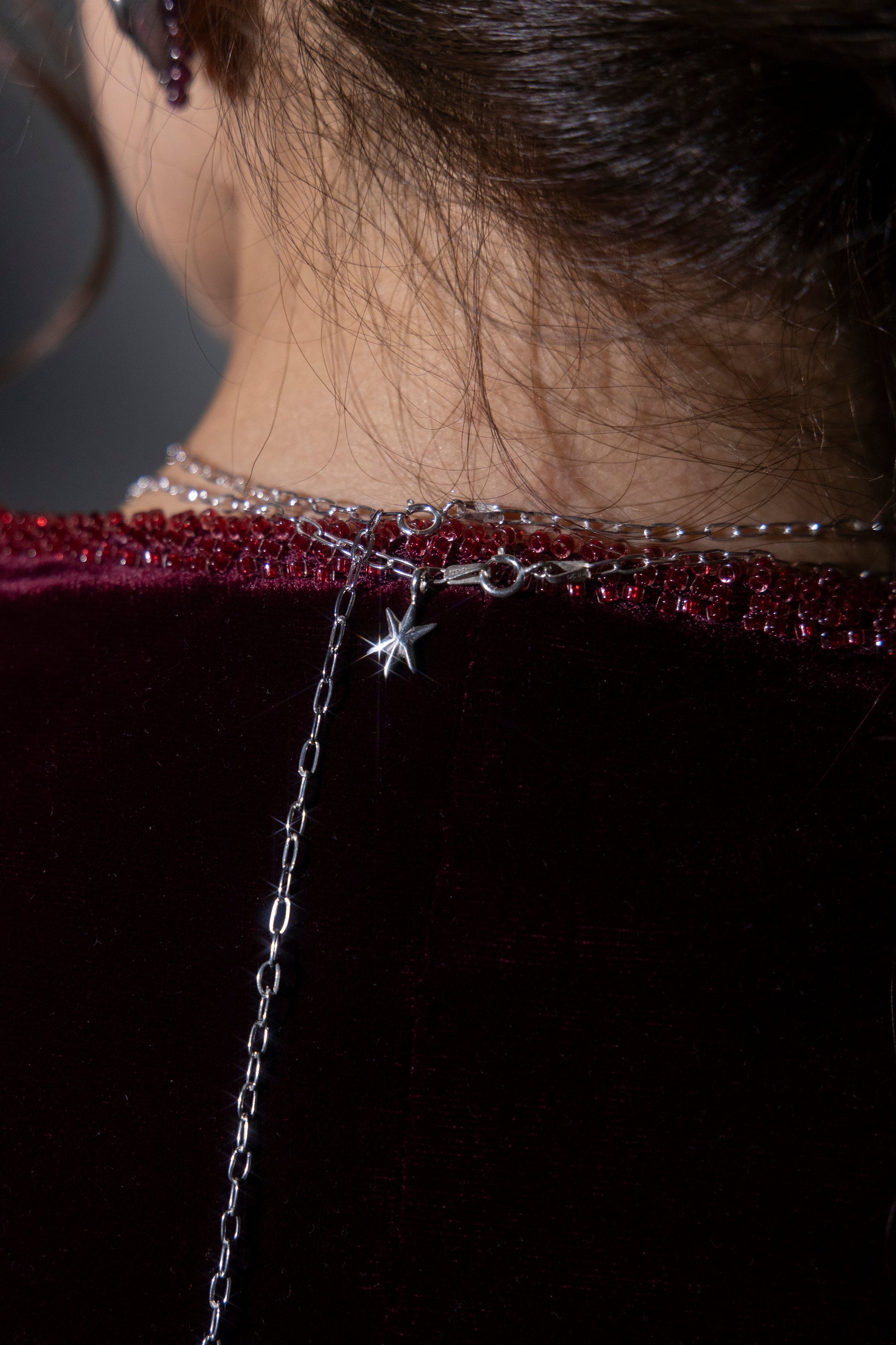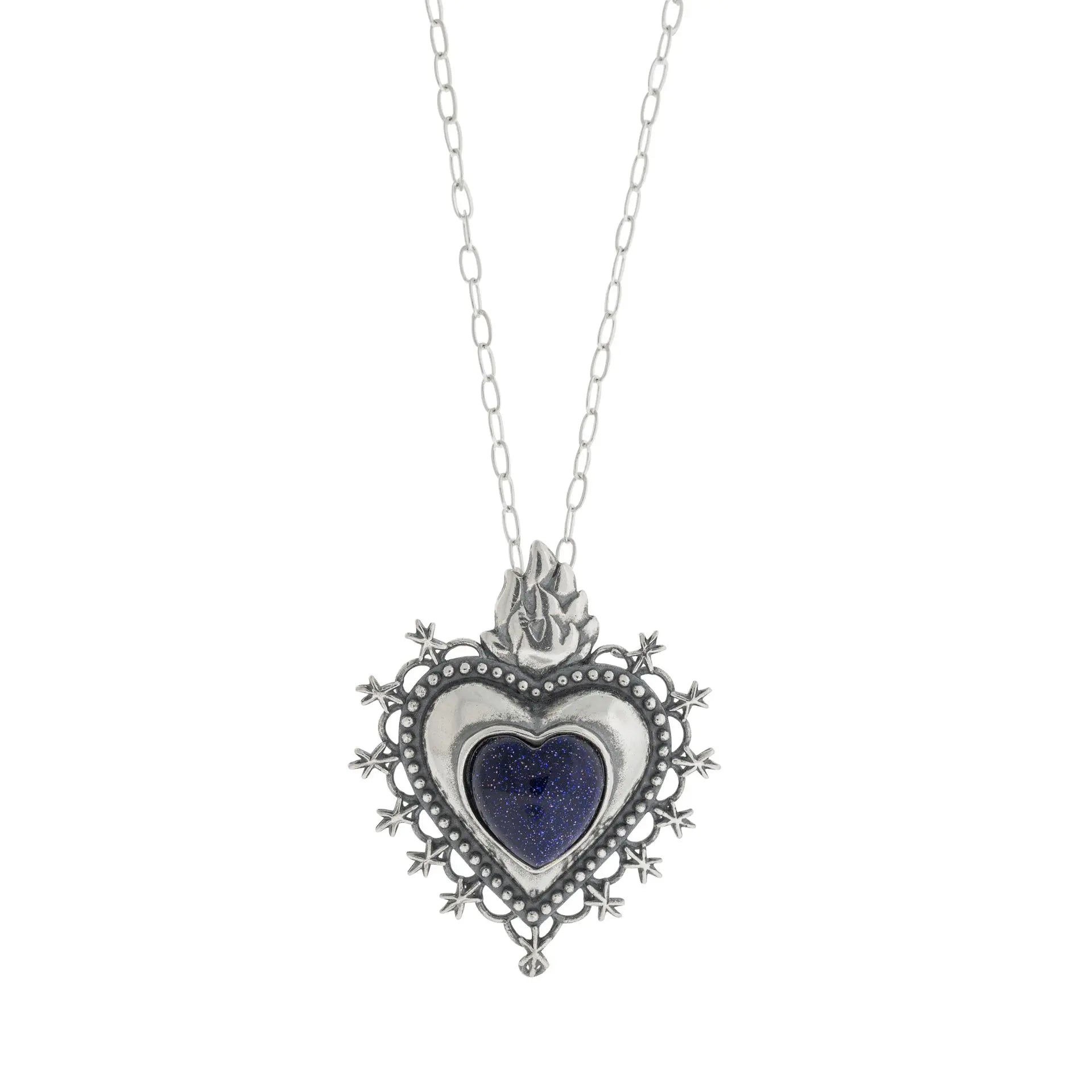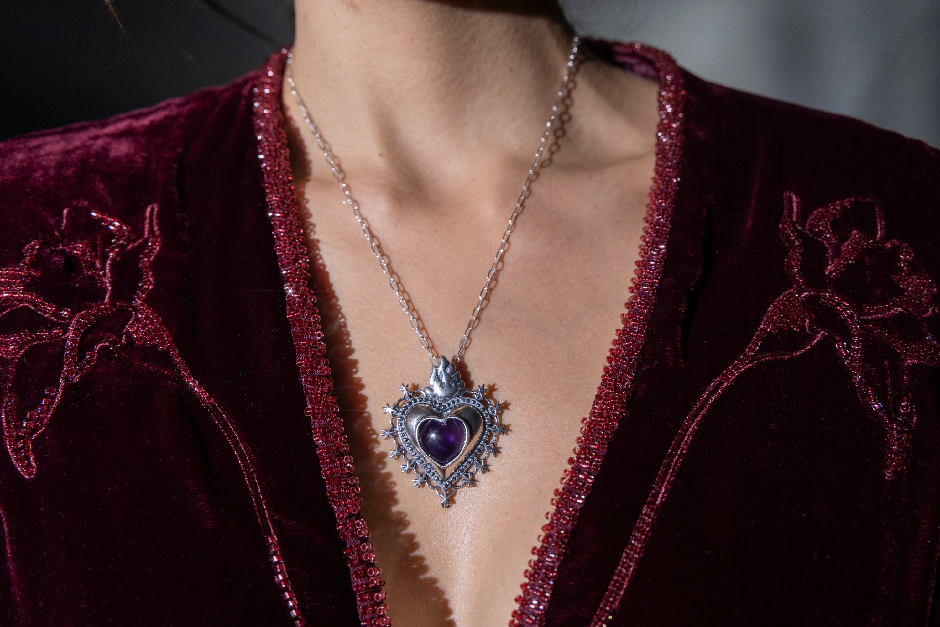 Dije con cadena de plata 925 en el centro un corazón de amatista, cuarzo o venturina.