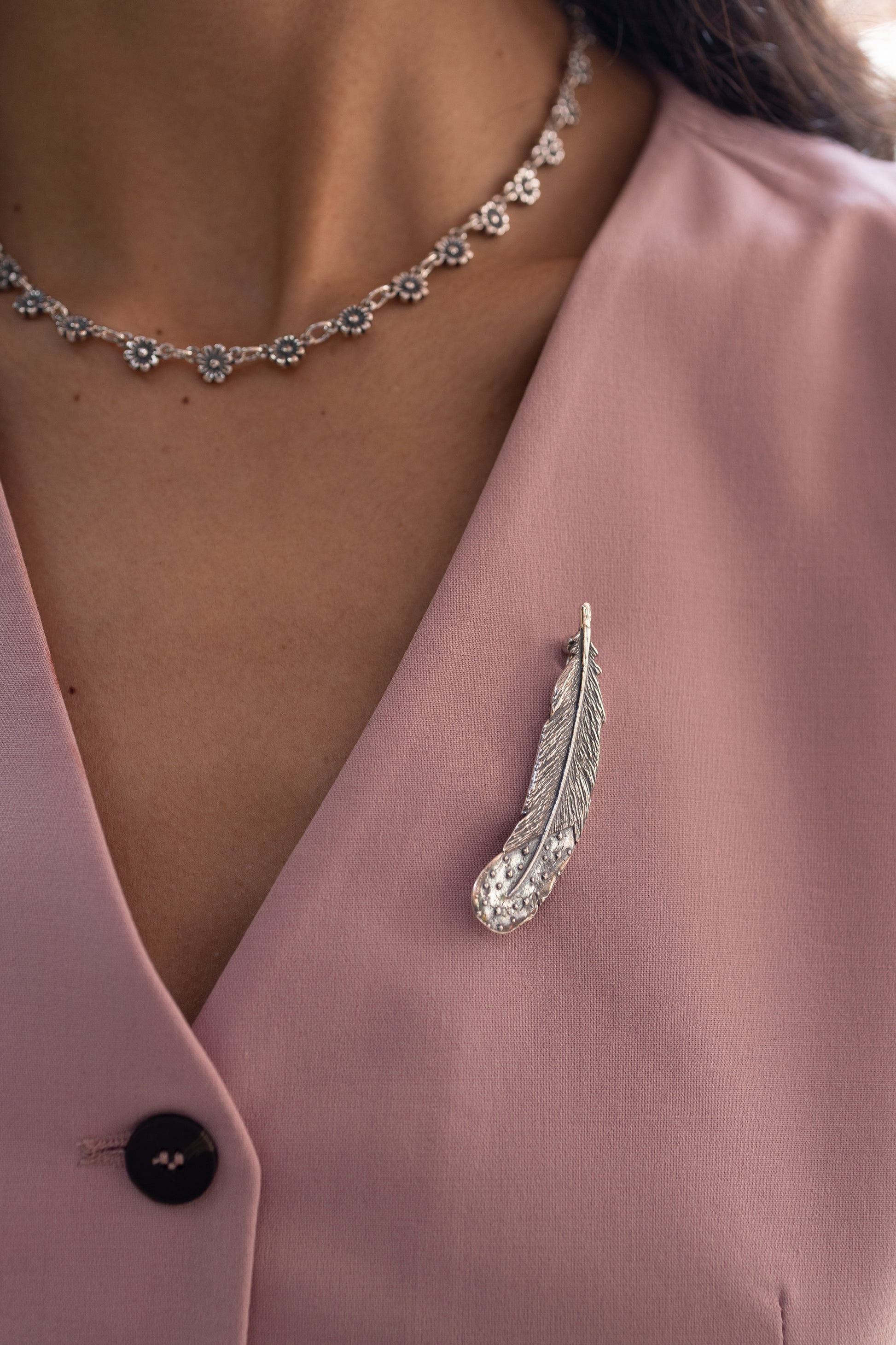 Este prendedor tiene el espíritu de la juventud que te hace sentir libre y confiada en tus propias alas. Es ideal para llevarlo en la solapa del saco o en la línea de los botones de la camisa. Está hecho de plata patinada para favorecer los detalles. Descubre el mensaje que tiene escrito por atrás.