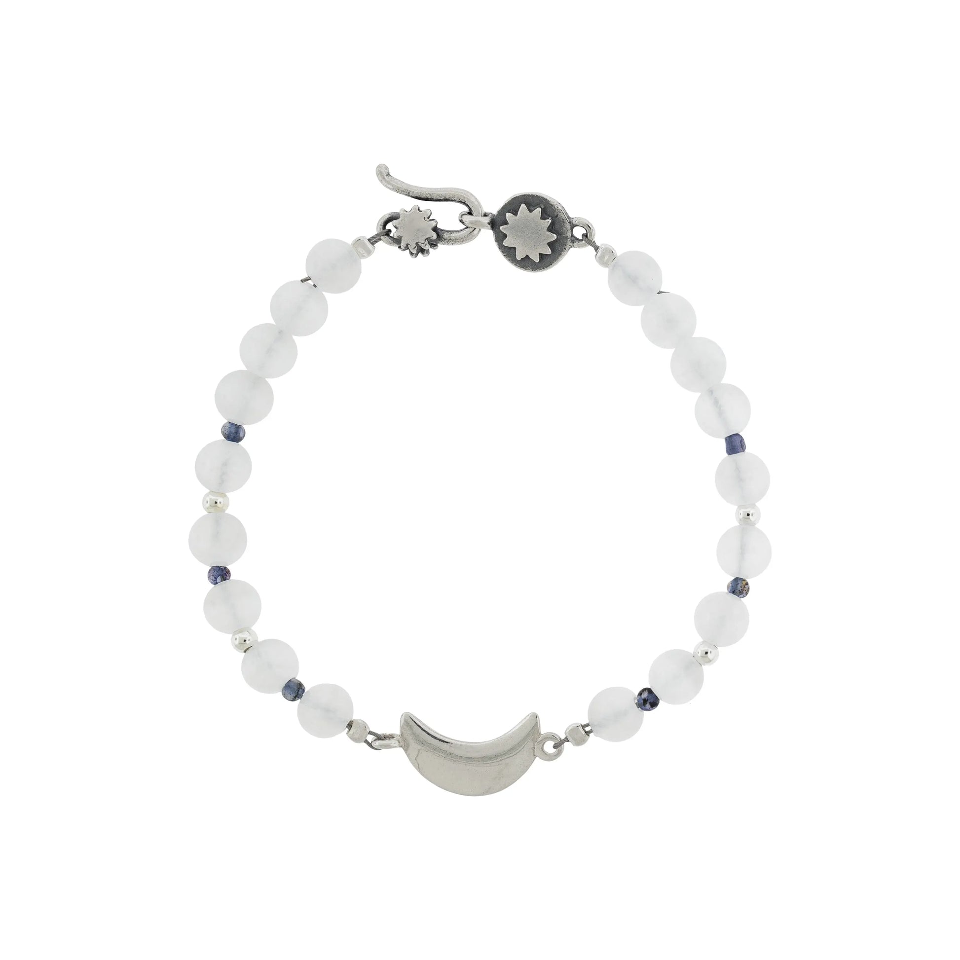 Pulsera con luna y broche de plata acompañada de selenitas.